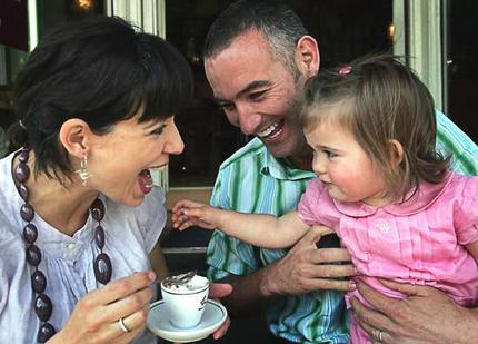 Wiggly wooing ... Anthony Field with wife Mikaela and daughter Lucia.
