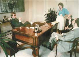 Prime minister Brian Mulroney meets with Mary Dawson in his office at 4:30 a.m. on June 3, 1987, as he desperately tries to broker a deal with the premiers on Meech Lake. Mrs. Dawson, who retired last month after a 36-year public service career, played a role in drafting some of Canada’s most important documents.
