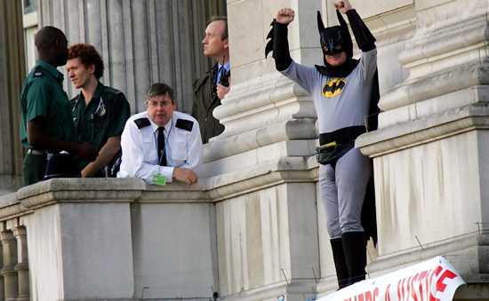 Police and emergency workers negoatiate with Jason Hatch from a balcony on Buckingham Palace in London. Photo: AFP