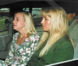 | Karla Homolka (right) and her sister Lori during Homolka's 1993 manslaughter trial in the deaths of two Ontario schoolgirls. |