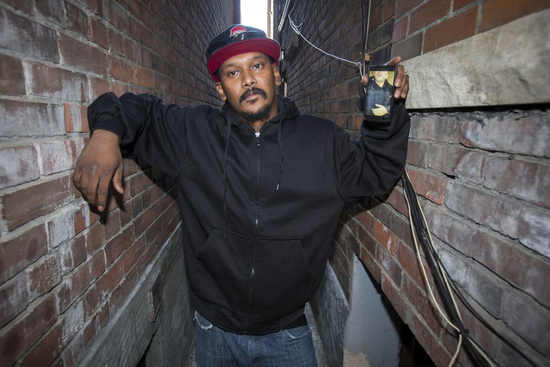 Abdi Sheik-Qasim poses on Sept. 22 with his new mobile phone and the video from his police assault. Sheik-Qasim used his phone to record a crucial part of his interaction with two Toronto police officers, which ended with Qasim facing a charge of assaulting a police officer. He never got his phone back after his arrest but the video was uploaded anyhow. (ANDREW FRANCIS WALLACE / TORONTO STAR)