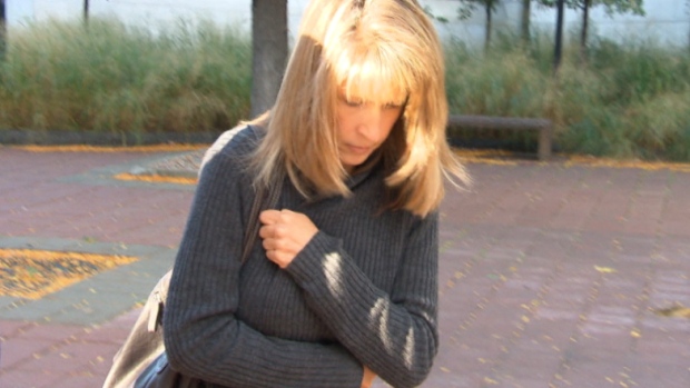 Katherine Kitts leaves the Ottawa courthouse after her release on bail in October 2014. (CBC)